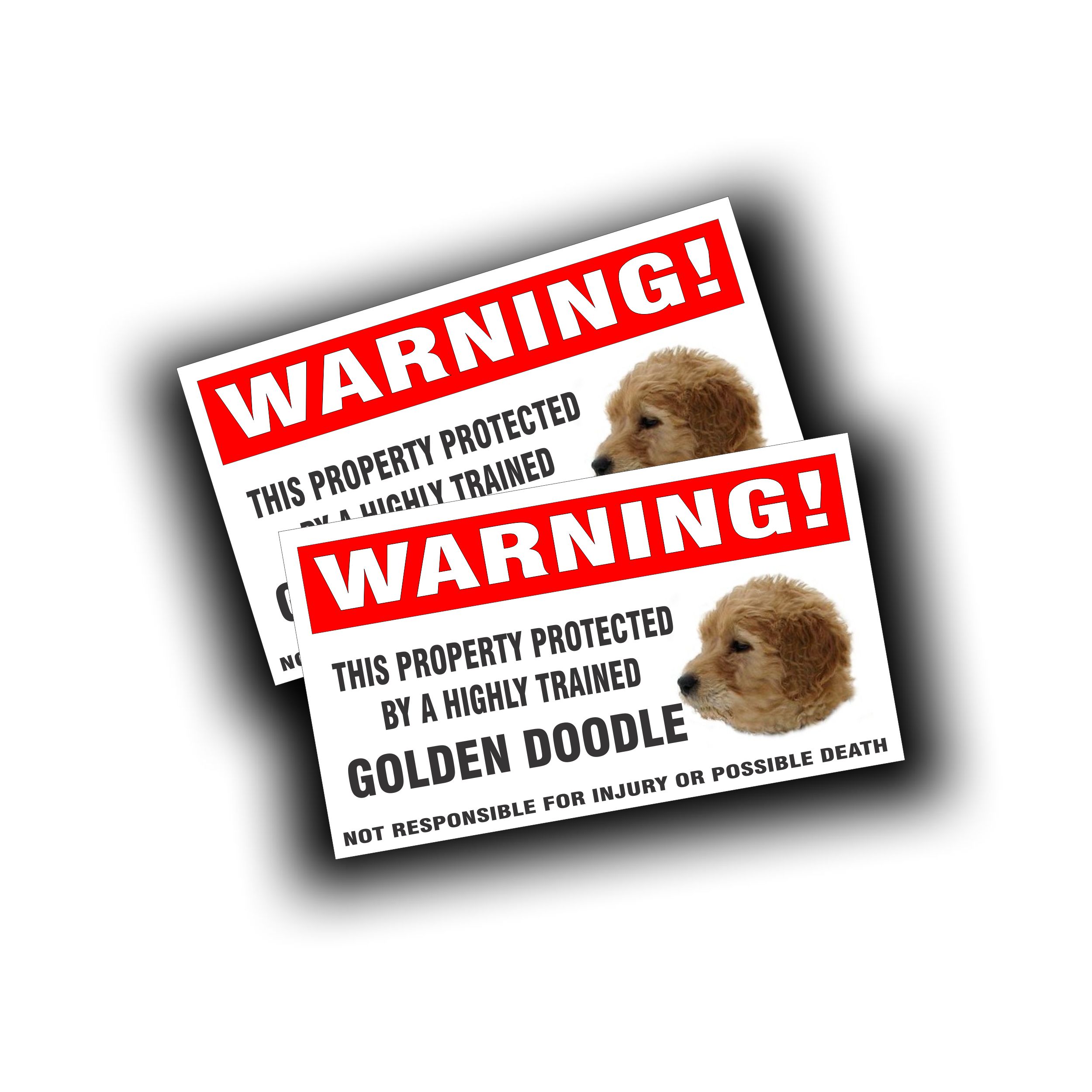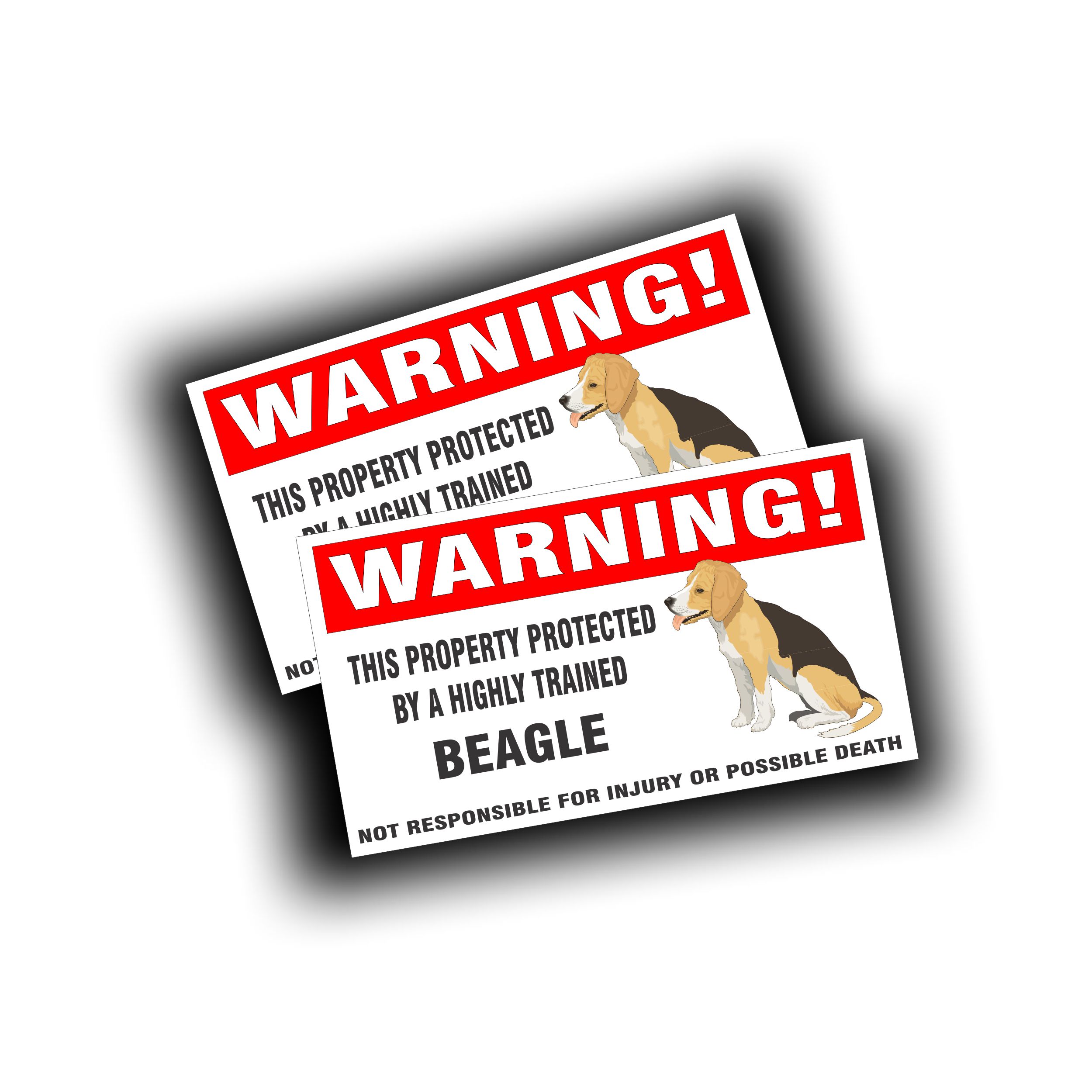 Warning Decal Great for Black, Yellow, Chocolate Labs Printed Vinyl Decal, 4 x 6 1/2 Inch New Larger Size Great on Glass, Fence, Cage, and more SKU: DC041DV2X Sold as a Pair for $14.94 Image with Pet Warning Decal Specifications |