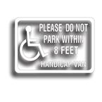 PLEASE DO NOT PARK WITHIN 8FEET Decal, 2 1/4 x 13 1/4 Inch Decal is open background, vehicle color shows through voids SKU: HC108D Sold as a Pair for $14.94 Also find this available as a magnet, Magnetic Signs page |