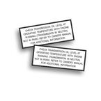 TRANSMISSION OIL LEVEL Printed Vinyl Decal, 2 x 5 inch Find this item on our Restoration Muscle Car Decals Page |