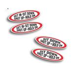 of - GET IN SIT DOWN SHUT UP HOLD ON (vehicles) 2 of - SIT DOWN SHUT UP HOLD ON (watercraft, ATVs) Digital Print Vinyl Decal Pair, 4 1/2 x 1 1/4 inch Find this item on our Restoration Muscle Car Decals Page |