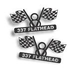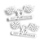 337 with V8 and crossed flags Cut Vinyl Decal, 3 1/2 x 6 1/2 inch SKU: MC026B Black SKU: MC026W White Sold as a Pair for $12.84 Image with Decal Specifications |