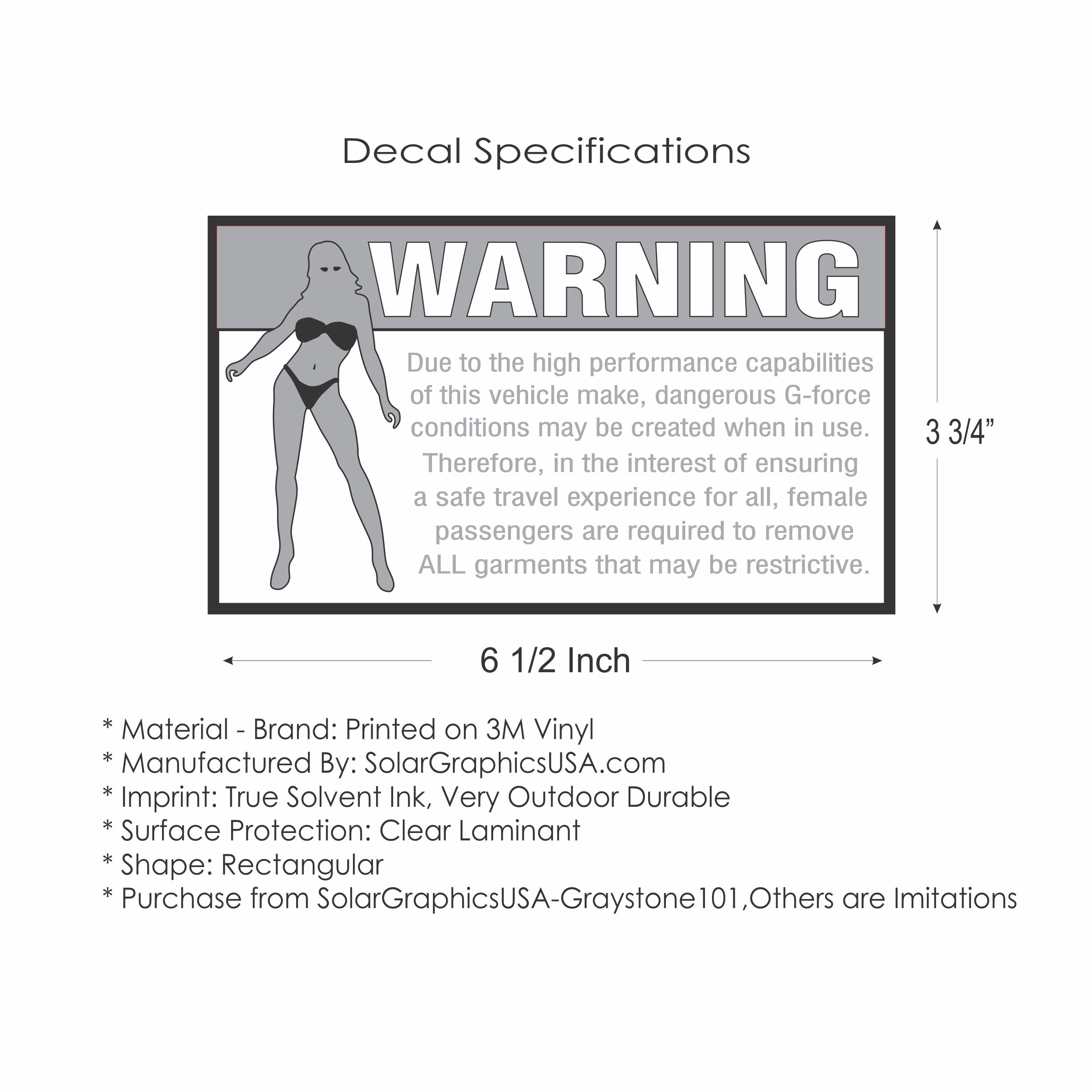 HP VEHICLE (females remove garments) Printed Vinyl Decal, 3 1/8 x 5 1/2 inch SKU: MC017D Sold as a pair for $12.84 Image with Decal Specifications |
