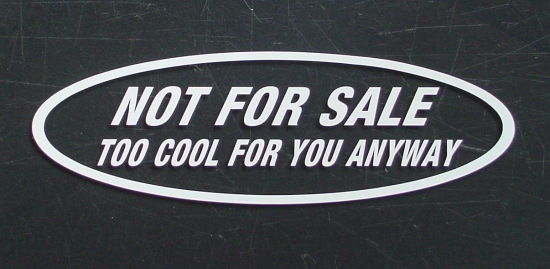 FOR SALE (too cool for you) Cut Vinyl Decal, 4 x 10 inch SKU: MC011B Black SKU: MC011W White Converting to selling as pairs, new images coming soon Sold as a Pair for $12.84 |