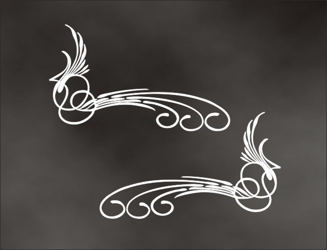 ACCENT 2 Cut Vinyl Decals on a sheet, Left and Right Cut Between decals use as you wish, 7 1/2 x 3 inch each SKU's: SA002B Black , SA002W White , SA002V Silver Sold as a set of right & Left for $15.93 |