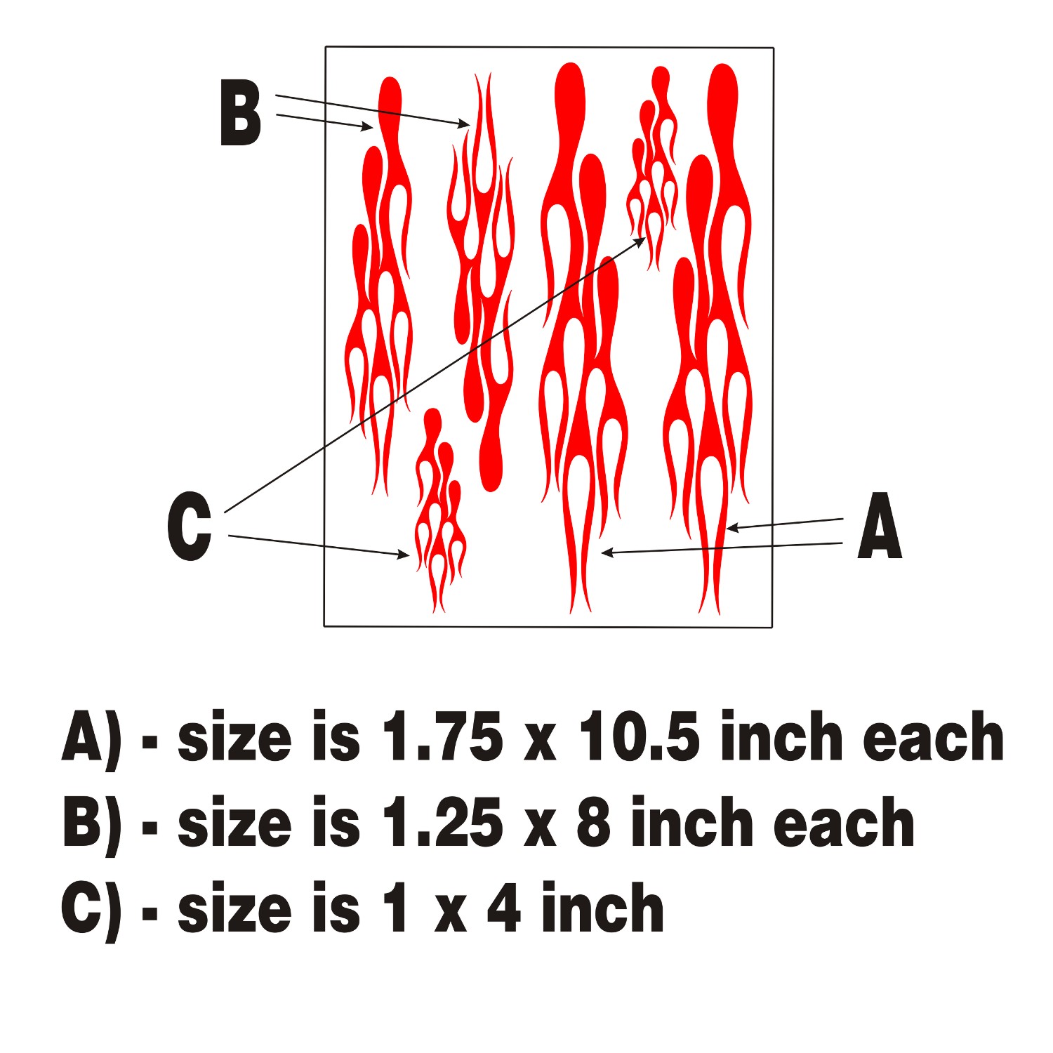 Vinyl Decals on a sheet, 1 3/4 x 9 inch each